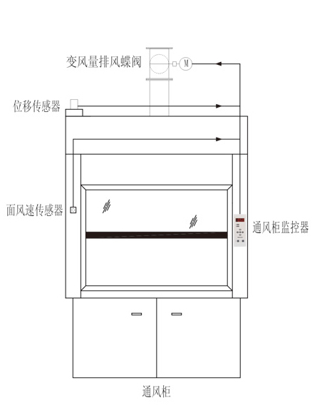 控制面板:采用液晶控制面板,設置有電源、開關、照明、風機以及運轉指示燈等按鈕,液晶顯示屏能清晰地顯示通風柜的運行情況;